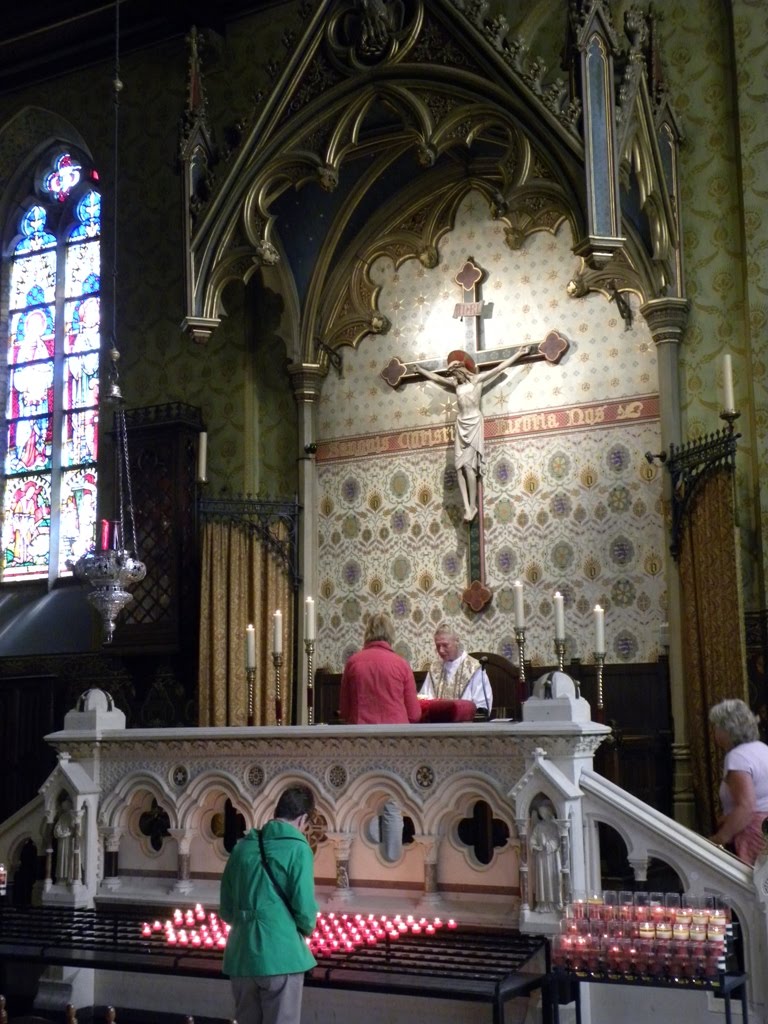 The western end of the stadhuis morphs into the Basiliek van het Heilig Bloed. The basilica takes its name from a phial supposedly containing a few drops of Christ's blood that was brought here after the 12th-century Crusades. The right-hand door leads upstairs to a colourfully adorned chapel where the relic is hidden behind a flamboyant.