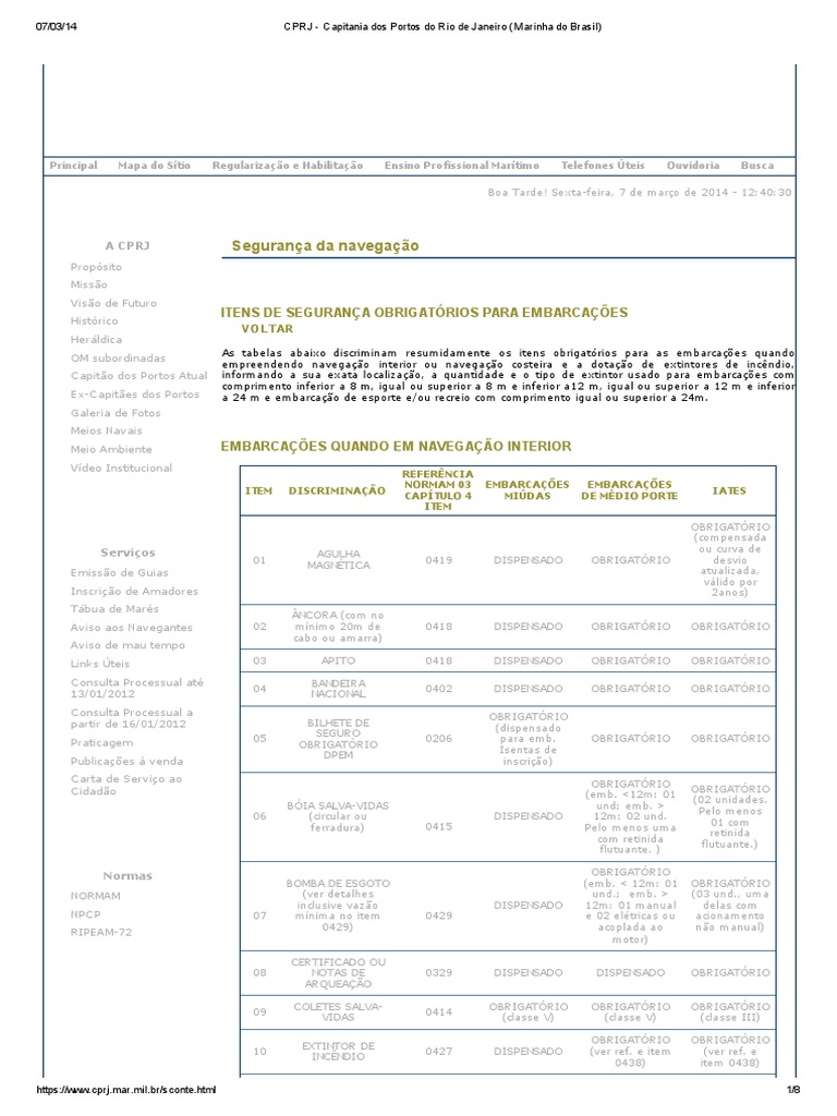 Capitania dos Portos do Rio de Janeiro ORIENTAR, INSTRUIR E FISCALIZAR. TUDO PELA SEGURANÇA DE QUEM VAI NAVEGAR. Buscar. Disque Denúncia; Perguntas Frequentes;. Consulta Processual HORÁRIO DE ATENDIMENTO DO GAP GVI - Grupo de Vistorias e Inspeções Inscrição de Amadores Tábua de Marés Publicações à Venda. NORMAS. Normam