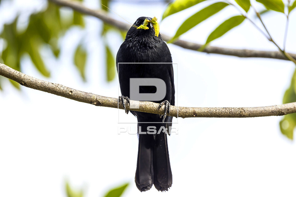 Pássaropreto comendo presa também denominado graúna , chicopreto , arrancamilho , chopim