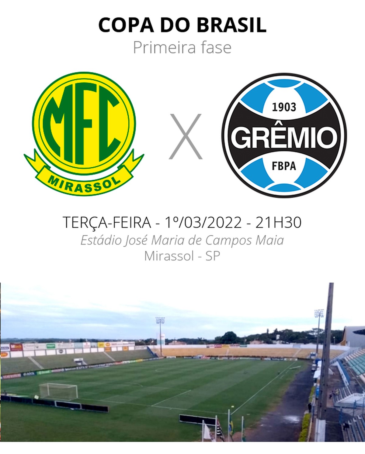 Mirassol x Grêmio pela Copa do Brasil 2022; Escalações e transmissão