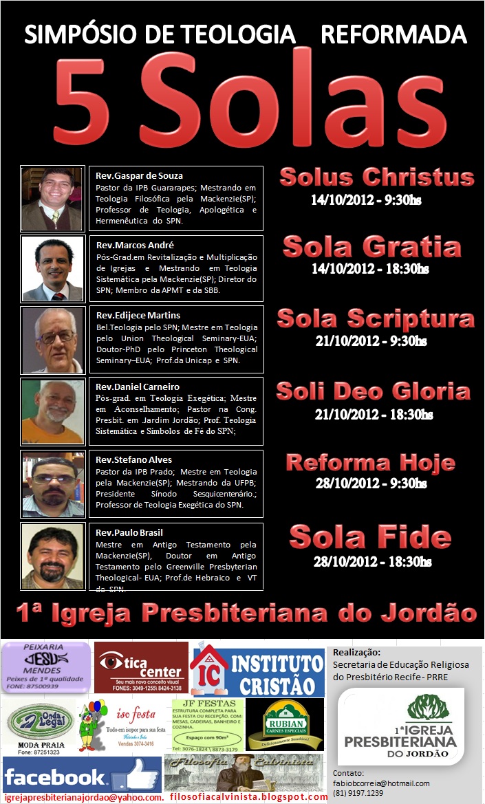 FILOSOFIA CALVINISTA SIMPÓSIO REFORMADO EM RECIFE OS 5 SOLAS DA REFORMA PROTESTANTE