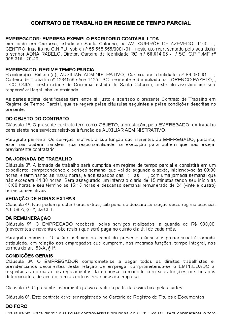Modelo De Contrato De Trabalho Em Regime De Tempo Parcial Hot Sex Picture